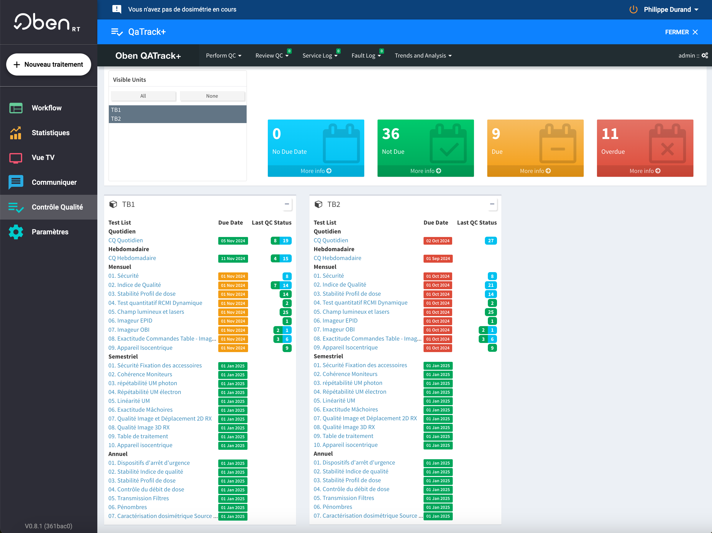 Pilotez votre programme d’assurance qualité avec QATrack+. L’équipe Obenmedic vous accompagne de l’installation à l’utilisation quotidienne avec un suivi personnalisé.
